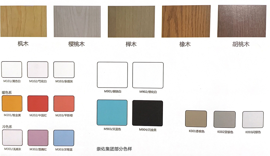 近年,醫院和辦公樓的過道及大廳裝修不再是千篇一律的白色,也開始使用多種色彩的搭配,特別是很多地方開始使用木紋表面,崇佑的鋼制復合墻板可以用貼膜和轉印技術定制各種花紋的鋼板墻。更多色樣選擇請聯系咨詢。