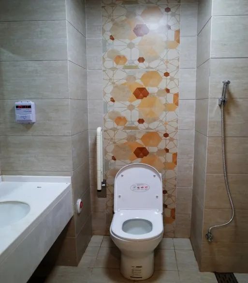 病區(qū)衛(wèi)生間采用干濕分區(qū),為了產(chǎn)婦、兒童的安全,淋浴間地面采用拉槽防滑處理,坐便器旁安置緊急呼叫按鈕。除此之外,還設(shè)置污洗龍頭,做到潔、污分開。真正將人性化設(shè)計(jì)落到實(shí)處。