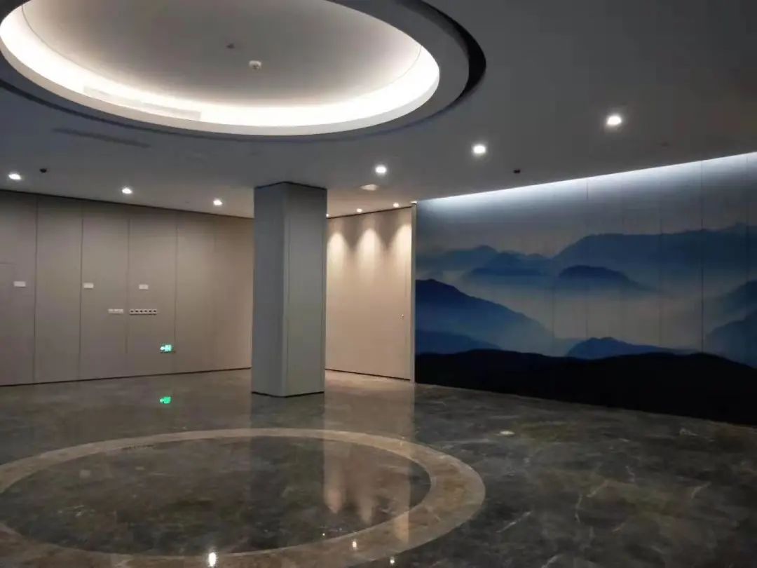 大樓主入口設(shè)置了鋁合金除泥墊,保持室內(nèi)空間的癥結(jié),更具人性化。主入口的背景采用了以“星空下,山水間”為主題的造型墻,把設(shè)計(jì)概念落實(shí)到實(shí)處。大廳等候區(qū)采用多元化的家具組合形式,讓空間更加生動(dòng)。