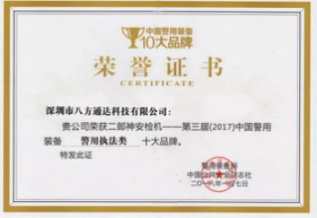 2018年1月7日,深圳市八方通達(dá)科技有限公司榮獲“第三屆中國警用裝備十大品牌”,這是八方通達(dá)第三次獲得此獎項。