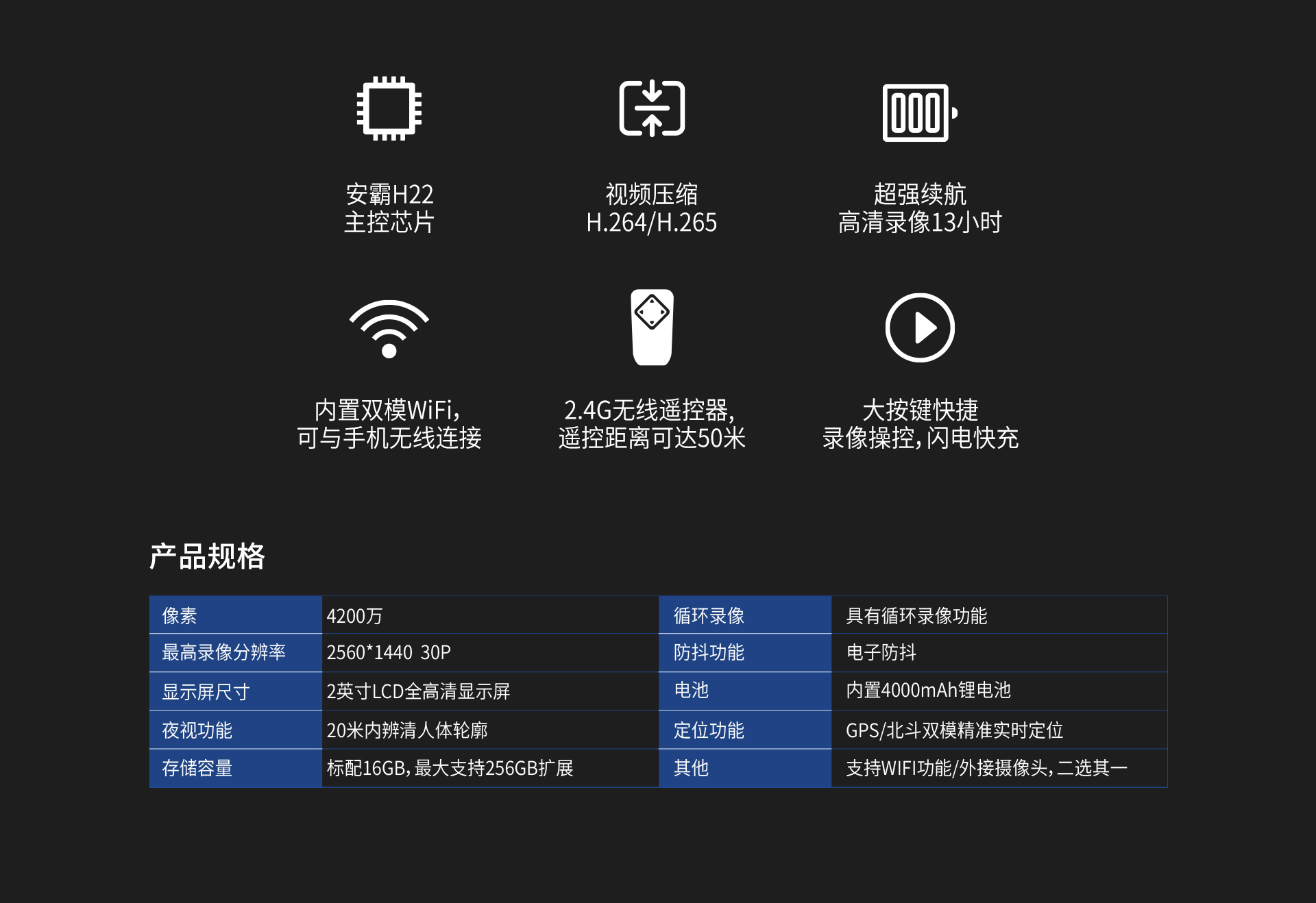 超強續(xù)航—高清錄像13小時